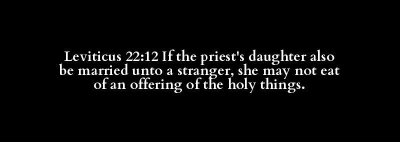 Leviticus 22:12 If the priest's daughter also be married unto a stranger, she may not eat of an offering of the holy things.