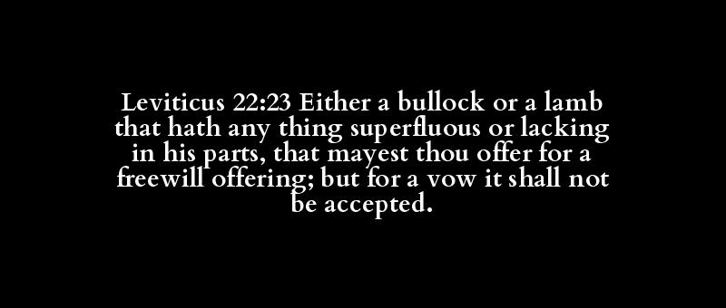 Leviticus 22:23 Either a bullock or a lamb that hath any thing superfluous or lacking in his parts, that mayest thou offer for a freewill offering; but for a vow it shall not be accepted.