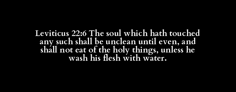 Leviticus 22:6 The soul which hath touched any such shall be unclean until even, and shall not eat of the holy things, unless he wash his flesh with water.