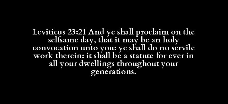Leviticus 23:21 And ye shall proclaim on the selfsame day, that it may be an holy convocation unto you: ye shall do no servile work therein: it shall be a statute for ever in all your dwellings throughout your generations.