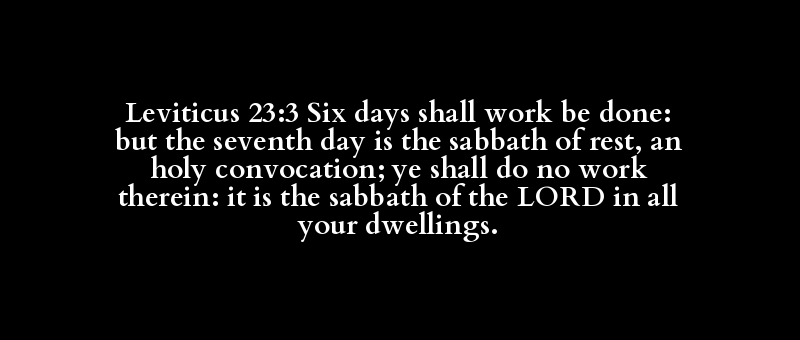 Leviticus 23:3 Six days shall work be done: but the seventh day is the sabbath of rest, an holy convocation; ye shall do no work therein: it is the sabbath of the LORD in all your dwellings.