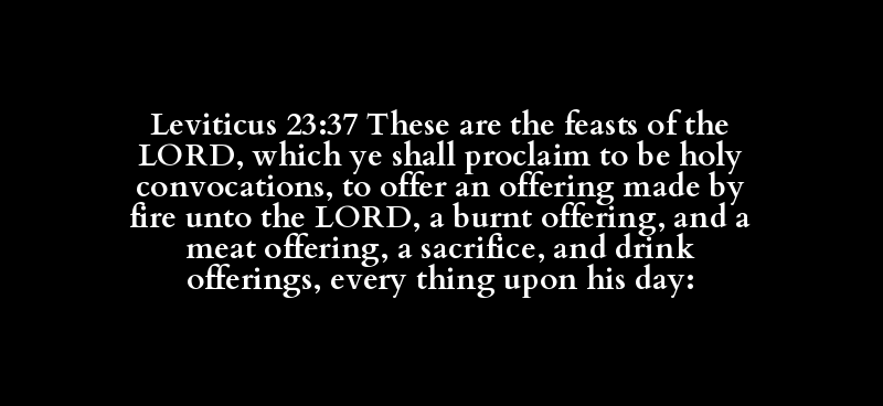 Leviticus 23:37 These are the feasts of the LORD, which ye shall proclaim to be holy convocations, to offer an offering made by fire unto the LORD, a burnt offering, and a meat offering, a sacrifice, and drink offerings, every thing upon his day: