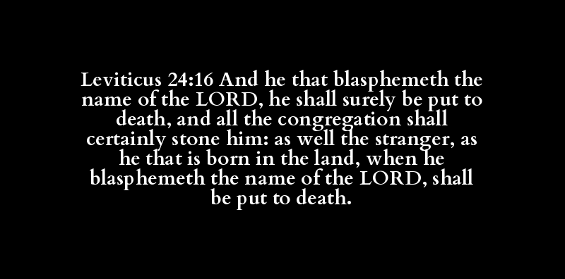 Leviticus 24:16 And he that blasphemeth the name of the LORD, he shall surely be put to death, and all the congregation shall certainly stone him: as well the stranger, as he that is born in the land, when he blasphemeth the name of the LORD, shall be put to death.