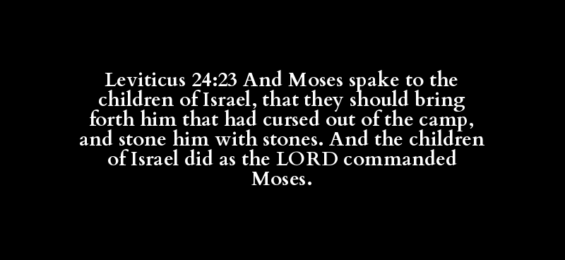 Leviticus 24:23 And Moses spake to the children of Israel, that they should bring forth him that had cursed out of the camp, and stone him with stones. And the children of Israel did as the LORD commanded Moses.