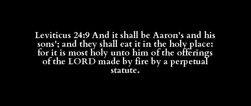 Leviticus 24:9 And it shall be Aaron's and his sons'; and they shall eat it in the holy place: for it is most holy unto him of the offerings of the LORD made by fire by a perpetual statute.