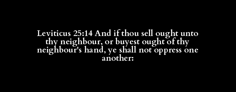 Leviticus 25:14 And if thou sell ought unto thy neighbour, or buyest ought of thy neighbour's hand, ye shall not oppress one another: