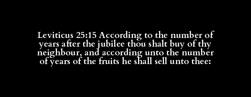 Leviticus 25:15 According to the number of years after the jubilee thou shalt buy of thy neighbour, and according unto the number of years of the fruits he shall sell unto thee: