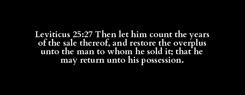 Leviticus 25:27 Then let him count the years of the sale thereof, and restore the overplus unto the man to whom he sold it; that he may return unto his possession.