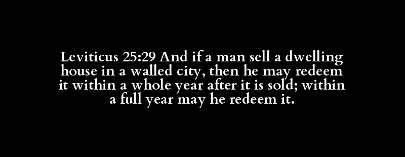 Leviticus 25:29 And if a man sell a dwelling house in a walled city, then he may redeem it within a whole year after it is sold; within a full year may he redeem it.