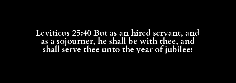Leviticus 25:40 But as an hired servant, and as a sojourner, he shall be with thee, and shall serve thee unto the year of jubilee: