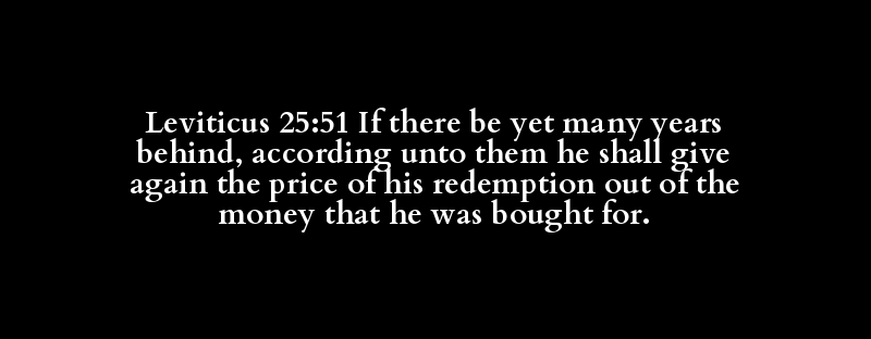 Leviticus 25:51 If there be yet many years behind, according unto them he shall give again the price of his redemption out of the money that he was bought for.