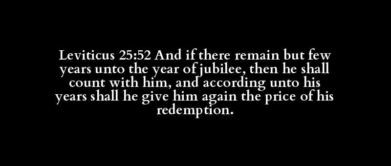 Leviticus 25:52 And if there remain but few years unto the year of jubilee, then he shall count with him, and according unto his years shall he give him again the price of his redemption.