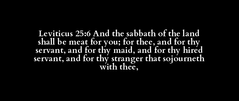 Leviticus 25:6 And the sabbath of the land shall be meat for you; for thee, and for thy servant, and for thy maid, and for thy hired servant, and for thy stranger that sojourneth with thee,