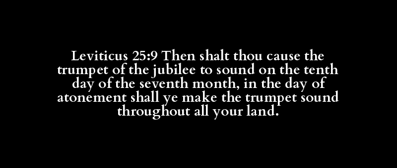 Leviticus 25:9 Then shalt thou cause the trumpet of the jubilee to sound on the tenth day of the seventh month, in the day of atonement shall ye make the trumpet sound throughout all your land.