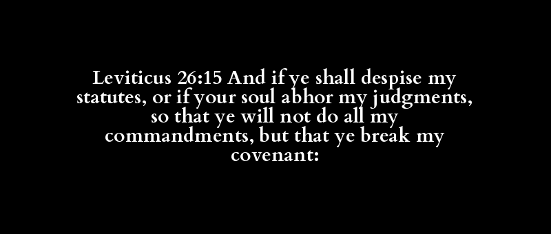 Leviticus 26:15 And if ye shall despise my statutes, or if your soul abhor my judgments, so that ye will not do all my commandments, but that ye break my covenant: