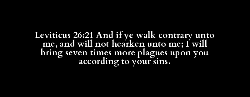 Leviticus 26:21 And if ye walk contrary unto me, and will not hearken unto me; I will bring seven times more plagues upon you according to your sins.