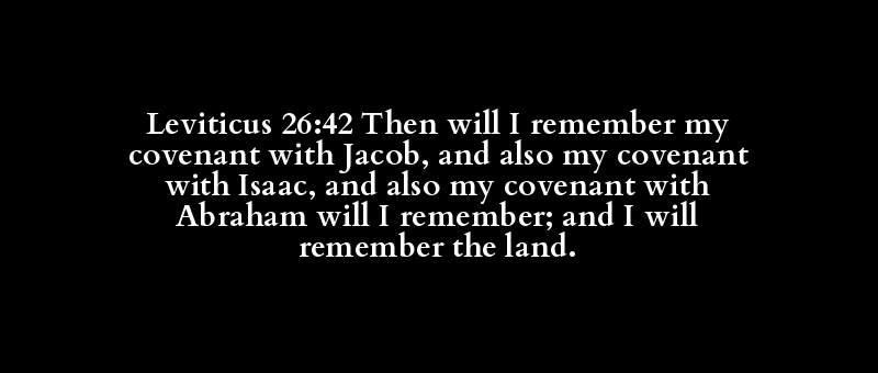 Leviticus 26:42 Then will I remember my covenant with Jacob, and also my covenant with Isaac, and also my covenant with Abraham will I remember; and I will remember the land.