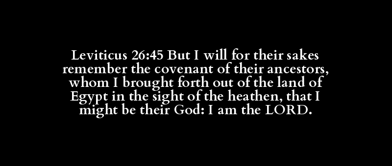 Leviticus 26:45 But I will for their sakes remember the covenant of their ancestors, whom I brought forth out of the land of Egypt in the sight of the heathen, that I might be their God: I am the LORD.