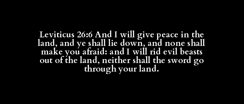 Leviticus 26:6 And I will give peace in the land, and ye shall lie down, and none shall make you afraid: and I will rid evil beasts out of the land, neither shall the sword go through your land.