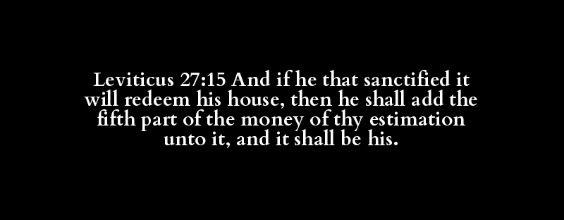 Leviticus 27:15 And if he that sanctified it will redeem his house, then he shall add the fifth part of the money of thy estimation unto it, and it shall be his.