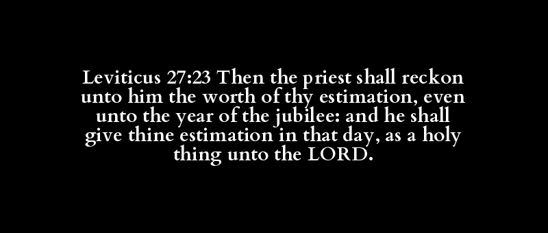 Leviticus 27:23 Then the priest shall reckon unto him the worth of thy estimation, even unto the year of the jubilee: and he shall give thine estimation in that day, as a holy thing unto the LORD.