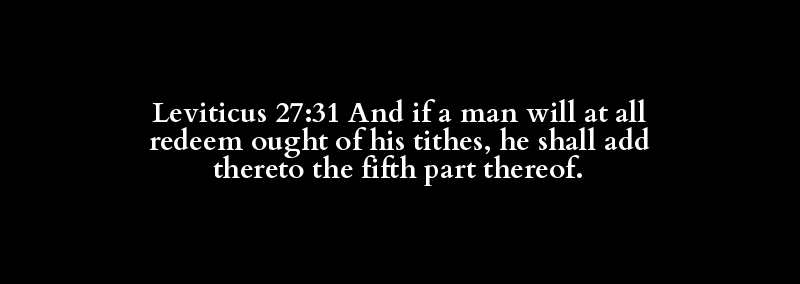 Leviticus 27:31 And if a man will at all redeem ought of his tithes, he shall add thereto the fifth part thereof.