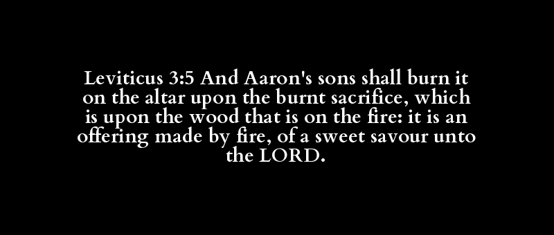 Leviticus 3:5 And Aaron's sons shall burn it on the altar upon the burnt sacrifice, which is upon the wood that is on the fire: it is an offering made by fire, of a sweet savour unto the LORD.