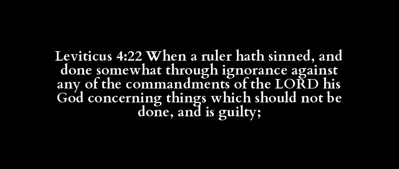 Leviticus 4:22 When a ruler hath sinned, and done somewhat through ignorance against any of the commandments of the LORD his God concerning things which should not be done, and is guilty;