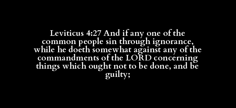 Leviticus 4:27 And if any one of the common people sin through ignorance, while he doeth somewhat against any of the commandments of the LORD concerning things which ought not to be done, and be guilty;
