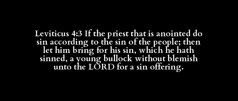 Leviticus 4:3 If the priest that is anointed do sin according to the sin of the people; then let him bring for his sin, which he hath sinned, a young bullock without blemish unto the LORD for a sin offering.