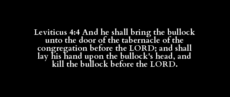 Leviticus 4:4 And he shall bring the bullock unto the door of the tabernacle of the congregation before the LORD; and shall lay his hand upon the bullock's head, and kill the bullock before the LORD.