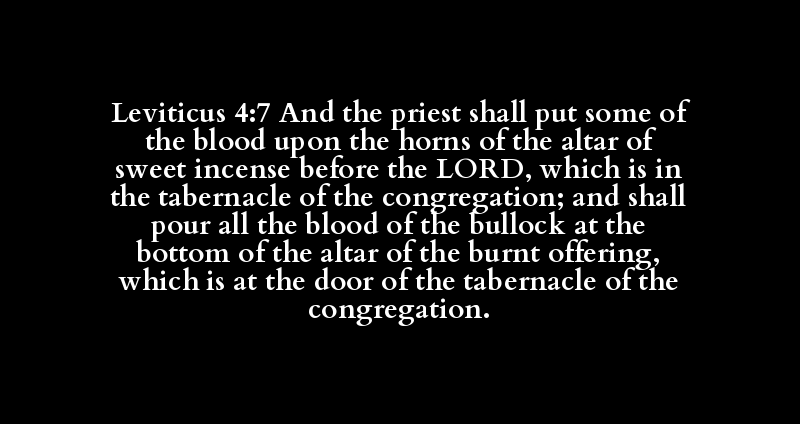 Leviticus 4:7 And the priest shall put some of the blood upon the horns of the altar of sweet incense before the LORD, which is in the tabernacle of the congregation; and shall pour all the blood of the bullock at the bottom of the altar of the burnt offering, which is at the door of the tabernacle of the congregation.