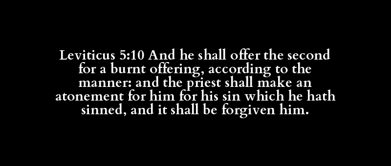 Leviticus 5:10 And he shall offer the second for a burnt offering, according to the manner: and the priest shall make an atonement for him for his sin which he hath sinned, and it shall be forgiven him.