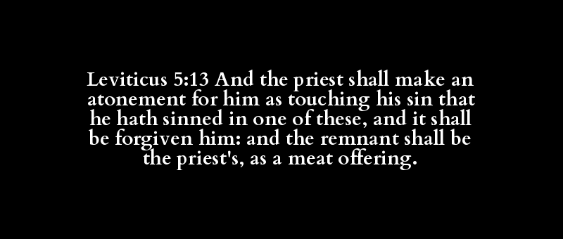 Leviticus 5:13 And the priest shall make an atonement for him as touching his sin that he hath sinned in one of these, and it shall be forgiven him: and the remnant shall be the priest's, as a meat offering.