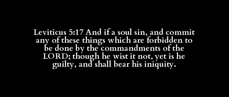 Leviticus 5:17 And if a soul sin, and commit any of these things which are forbidden to be done by the commandments of the LORD; though he wist it not, yet is he guilty, and shall bear his iniquity.