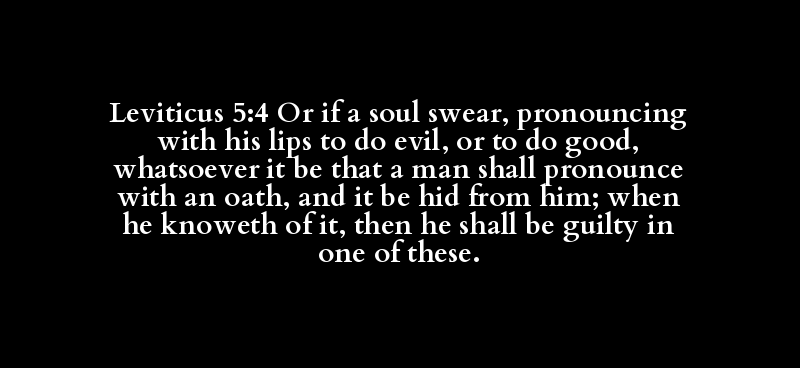 Leviticus 5:4 Or if a soul swear, pronouncing with his lips to do evil, or to do good, whatsoever it be that a man shall pronounce with an oath, and it be hid from him; when he knoweth of it, then he shall be guilty in one of these.