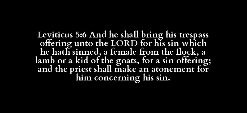 Leviticus 5:6 And he shall bring his trespass offering unto the LORD for his sin which he hath sinned, a female from the flock, a lamb or a kid of the goats, for a sin offering; and the priest shall make an atonement for him concerning his sin.