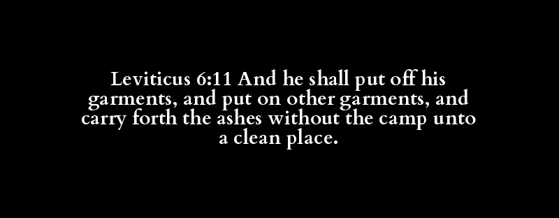 Leviticus 6:11 And he shall put off his garments, and put on other garments, and carry forth the ashes without the camp unto a clean place.