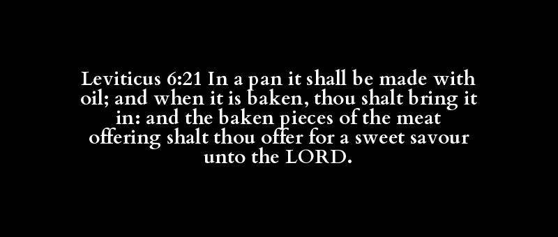 Leviticus 6:21 In a pan it shall be made with oil; and when it is baken, thou shalt bring it in: and the baken pieces of the meat offering shalt thou offer for a sweet savour unto the LORD.