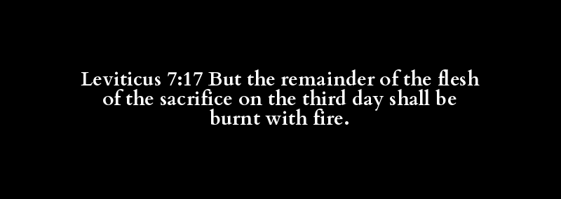 Leviticus 7:17 But the remainder of the flesh of the sacrifice on the third day shall be burnt with fire.
