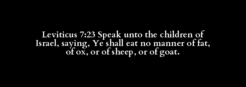 Leviticus 7:23 Speak unto the children of Israel, saying, Ye shall eat no manner of fat, of ox, or of sheep, or of goat.