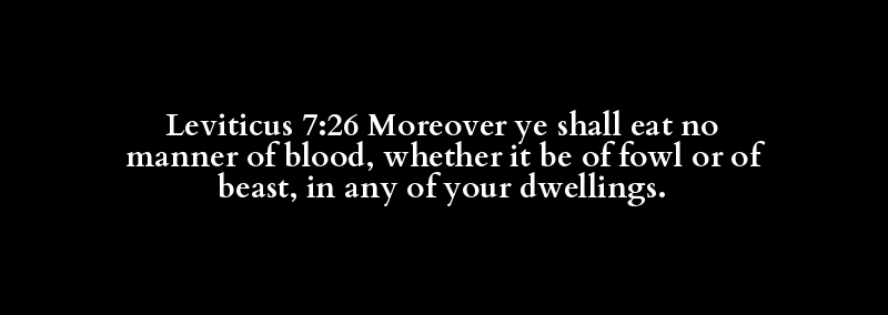 Leviticus 7:26 Moreover ye shall eat no manner of blood, whether it be of fowl or of beast, in any of your dwellings.