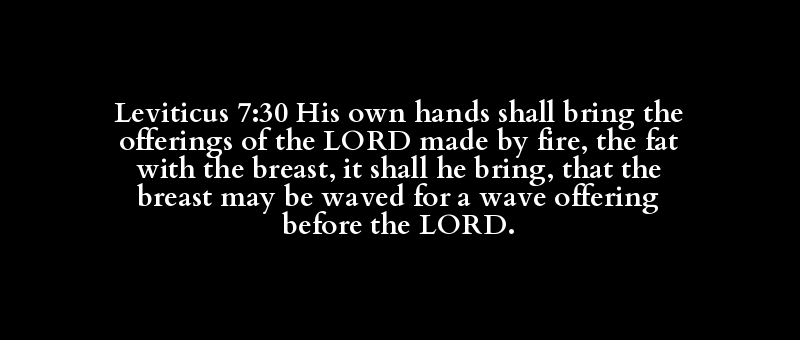 Leviticus 7:30 His own hands shall bring the offerings of the LORD made by fire, the fat with the breast, it shall he bring, that the breast may be waved for a wave offering before the LORD.