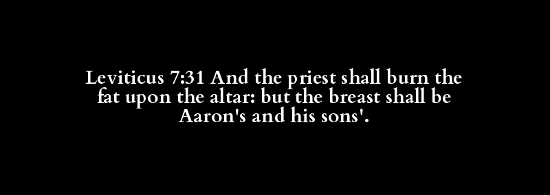 Leviticus 7:31 And the priest shall burn the fat upon the altar: but the breast shall be Aaron's and his sons'.
