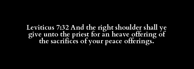 Leviticus 7:32 And the right shoulder shall ye give unto the priest for an heave offering of the sacrifices of your peace offerings.