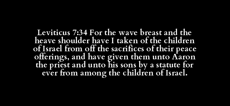 Leviticus 7:34 For the wave breast and the heave shoulder have I taken of the children of Israel from off the sacrifices of their peace offerings, and have given them unto Aaron the priest and unto his sons by a statute for ever from among the children of Israel.