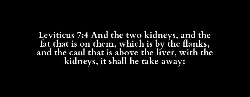 Leviticus 7:4 And the two kidneys, and the fat that is on them, which is by the flanks, and the caul that is above the liver, with the kidneys, it shall he take away: