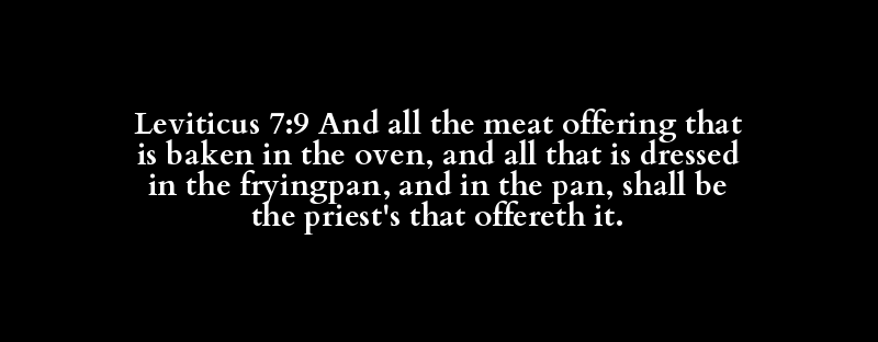 Leviticus 7:9 And all the meat offering that is baken in the oven, and all that is dressed in the fryingpan, and in the pan, shall be the priest's that offereth it.