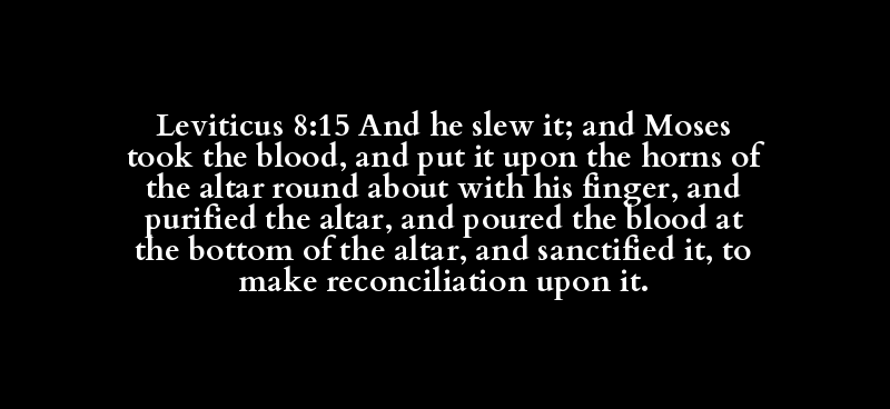Leviticus 8:15 And he slew it; and Moses took the blood, and put it upon the horns of the altar round about with his finger, and purified the altar, and poured the blood at the bottom of the altar, and sanctified it, to make reconciliation upon it.