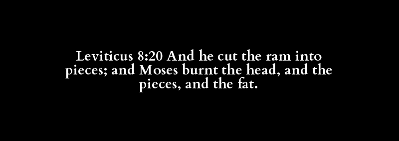 Leviticus 8:20 And he cut the ram into pieces; and Moses burnt the head, and the pieces, and the fat.